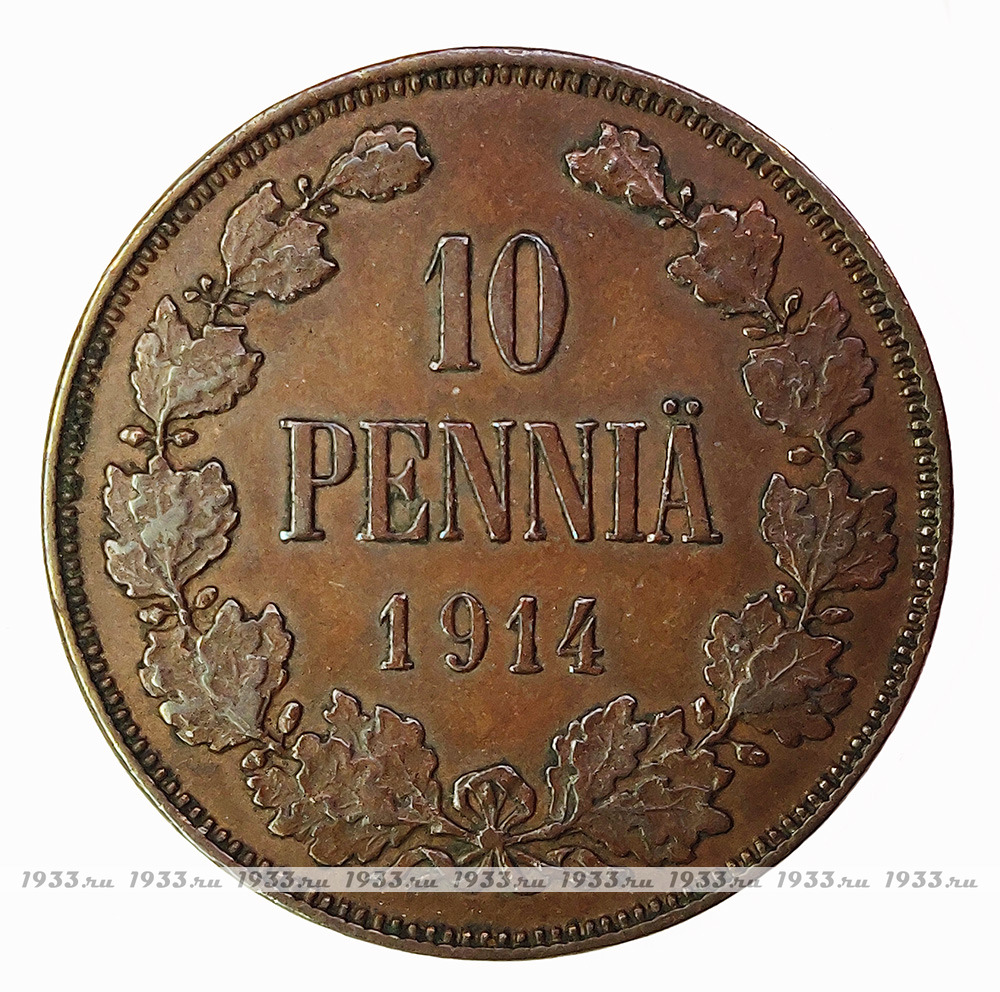 info@1933.ruФИНЛЯНДИЯ В СОСТАВЕ РОССИИ. 10 ПЕННИ 1914 Г., С ВЕНЗЕЛЕМ ИМПЕРАТОРА Назад в каталог