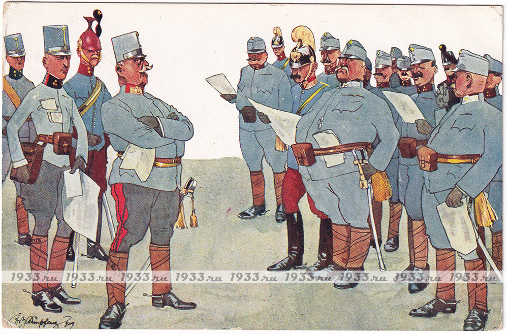 АВСТРО-ВЕНГЕРСКАЯ ИМПЕРИЯ. ПРОПАГАНДА. ФРИЦ ШЁНПФЛЮГ. ЮМОР ПЕРВОЙ МИРОВОЙ ВОЙНЫ. "РАЗДАЧА УКАЗАНИЙ".