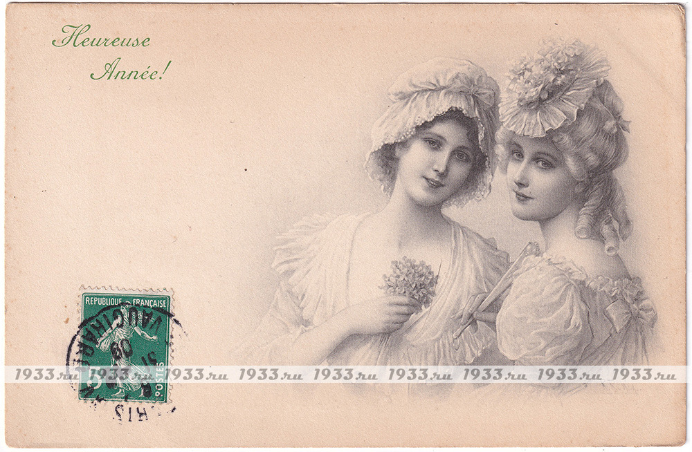 ФРАНЦИЯ. ГЛАМУРНАЯ ОТКРЫТКА "С НОВЫМ ГОДОМ!"