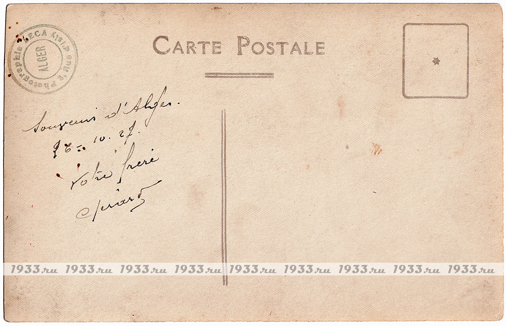 Оборот подписан и стоит штампик фотоателье в Алжире. Отличное состояние.