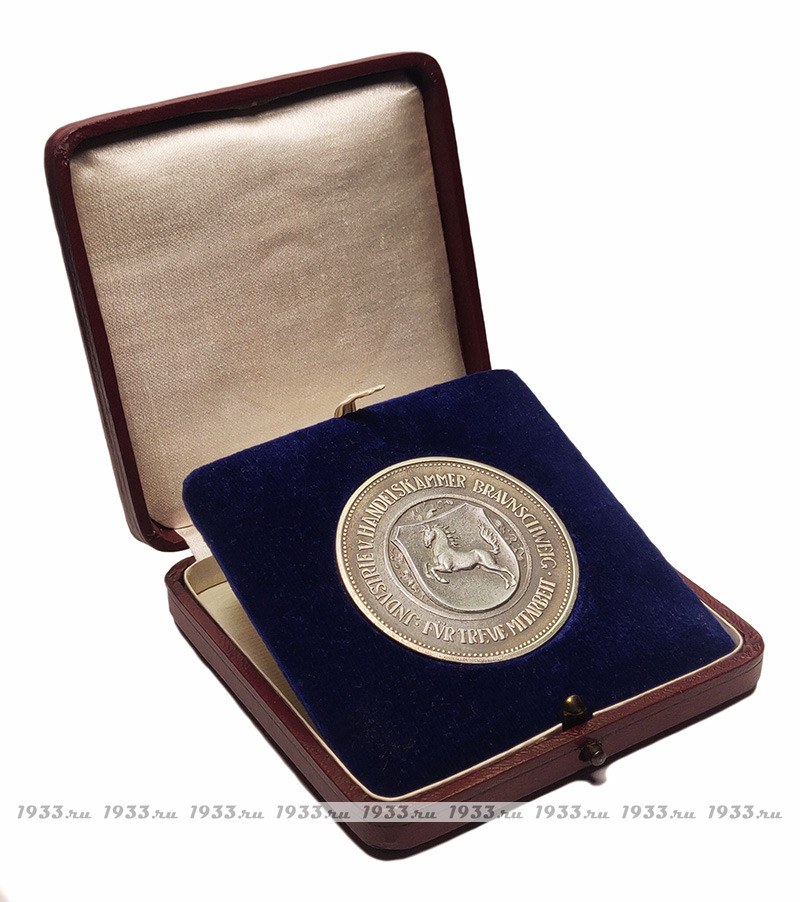 Íà àâåðñå ìåäàëè ãåðá Çåìëè Íèæíÿÿ Ñàêñîíèÿ (çíàìåíèòàÿ ñàêñîíñêàÿ ëîøàäêà), êóäà âõîäèë Áðàóíøâåéã. Íà ðåâåðñå èçîáðàæåí ñòàðèííûé äîì, íàõîäèâøèéñÿ íà ñòàðîé ðûíî÷íîé ïëîùàäè ãîðîäà Áðàóíøâåéãà, ãäå ñ 1910 ãîäà íà âåðõíèõ ýòàæàõ íàõîäèëàñü "IHK". Íàä îäíîì èç ôàñàäîâ áûëà èçîáðàæåíà è óêàçàííàÿ íàäïèñü íà ëàòûíè "Quod tibi hoc alteri" - "×òî äëÿ òåáÿ, òî è äëÿ äðóãèõ". Ìåäàëè îòëè÷àþòñÿ íàäïèñÿìè íà ðåâåðñå: äî 1918 ã. Òîðãîâàÿ ïàëàòà ãåðöîãñòâà Áðàóíøâåéã; äî 1924 ã. - Òîðãîâàÿ ïàëàòà Áðàóíøâåéã; äî 1933 ã. - Èíäóñòðèàëüíàÿ è òîðãîâàÿ ïàëàòà Áðàóíøâåéã.