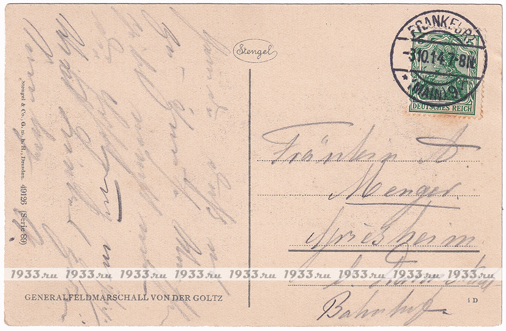 ГЕРМАНСКАЯ ИМПЕРИЯ. ПЕРВАЯ МИРОВАЯ ВОЙНА. ГЕНЕРАЛ-ФЕЛЬДМАРШАЛ КОЛЬМАР ФОН ДЕР ГОЛЬЦ.