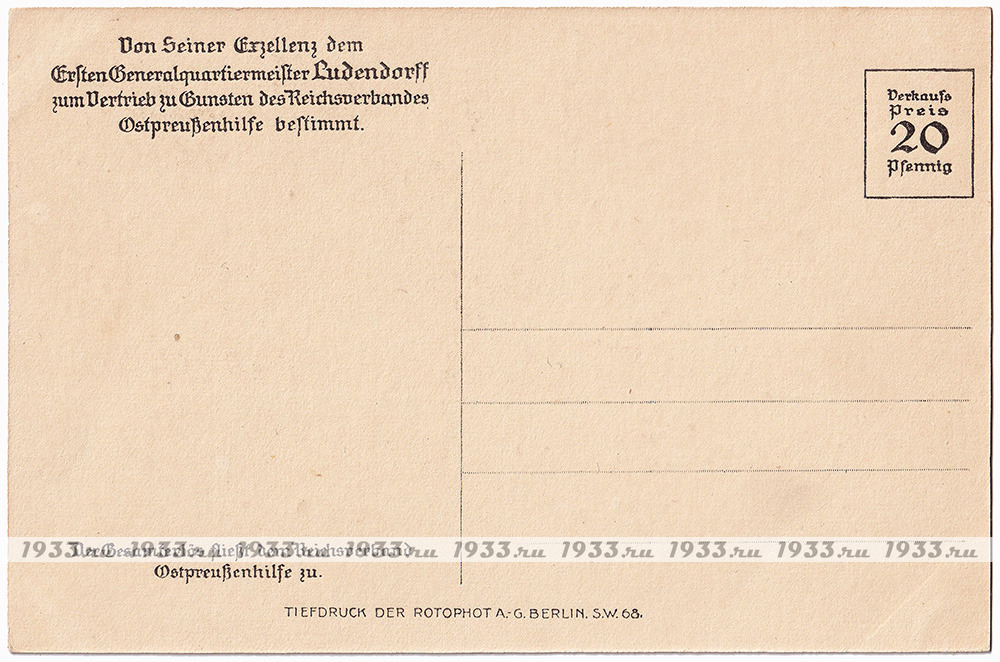 ГЕРМАНСКАЯ ИМПЕРИЯ. ПМВ. ЭРИХ ФРИДРИХ ВИЛЬГЕЛЬМ ЛЮДЕНДОРФ Назад в каталог