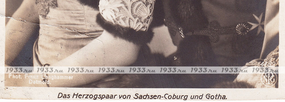 На фотографии Карл-Эдуард фон-Саксен-Кобург-Готский, (1884–1954 г.г.), герцог, (президент Немецкого Красного Креста) и его супруга - принцесса Виктория Адельгейде Шлезвиг-Гольштейн-Зондербург-Глюксбургская, родственница немецкой императрицы Августы Виктории.