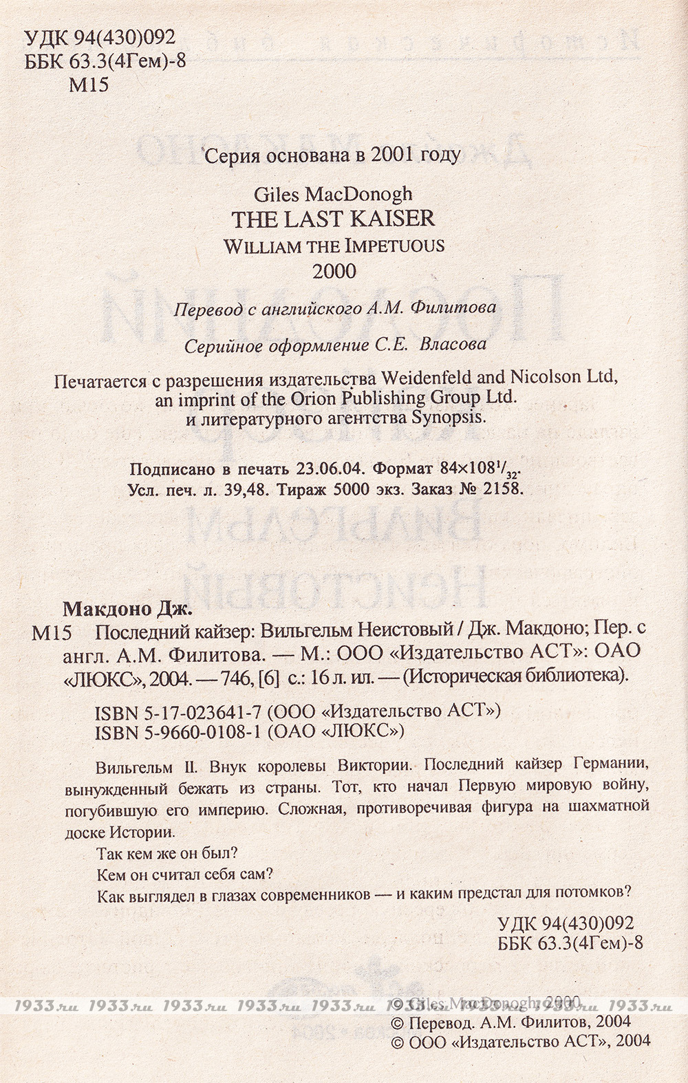 Ñåðèÿ Èñòîðè÷åñêàÿ áèáëèîòåêà. Ìîñêâà, 2004 ã., 748 ñòðàíèö