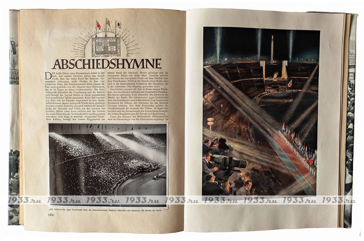 Ïàìÿòíûé àëüáîì ñ èòîãàìè Îëèìïèàäû 1936 ãîäà. Îêîëî 300 âêëååííûõ ôîòî â êàæäîì òîìå, öâåòíûå âêëàäêè, âñÿ èñòîðèÿ Èãð, âñå ÷åìïèîíû, â 1-ì òîìå ìåòðîâûé öâåòíîé ðàçâîðîò-êàðòà ìåðîïðèÿòèé.