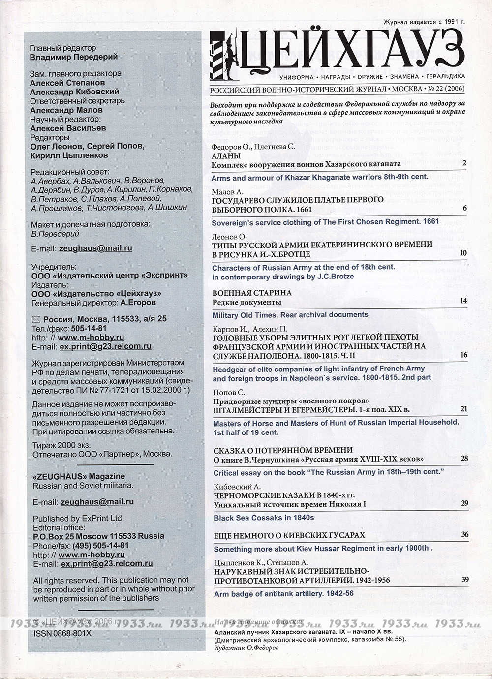info@1933.ruВОЕННО-ИСТОРИЧЕСКИЙ ЖУРНАЛ "ЦЕЙХГАУЗ" № 22 - 2006 г. Назад в каталог