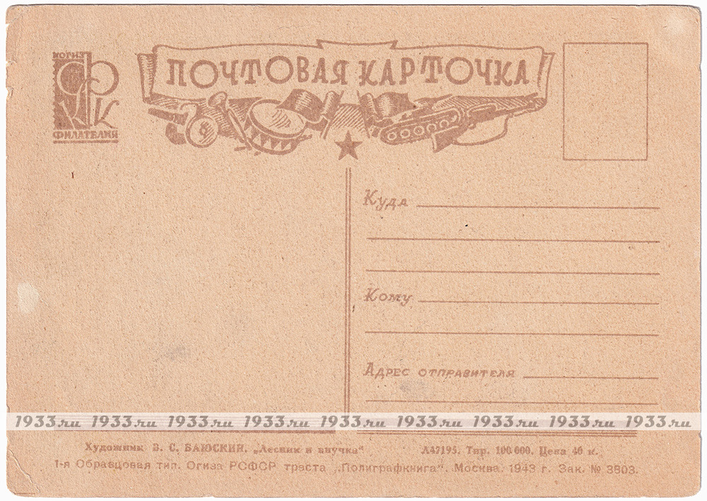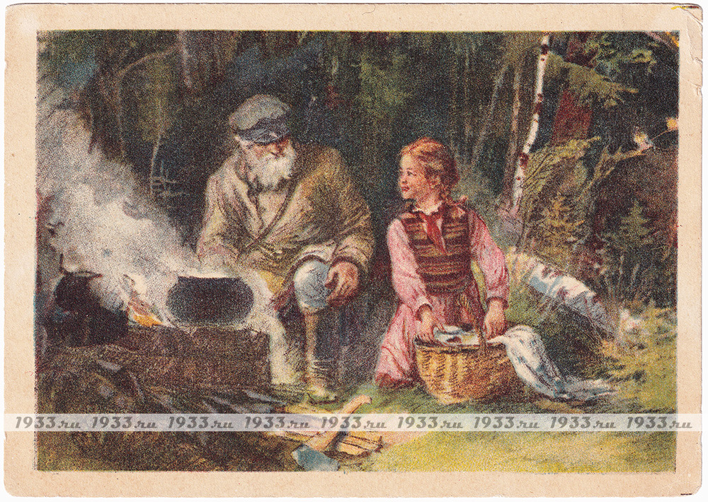 СССР. ХУДОЖНИК В.С.БАЮСКИН "ЛЕСНИК И ВНУЧКА".