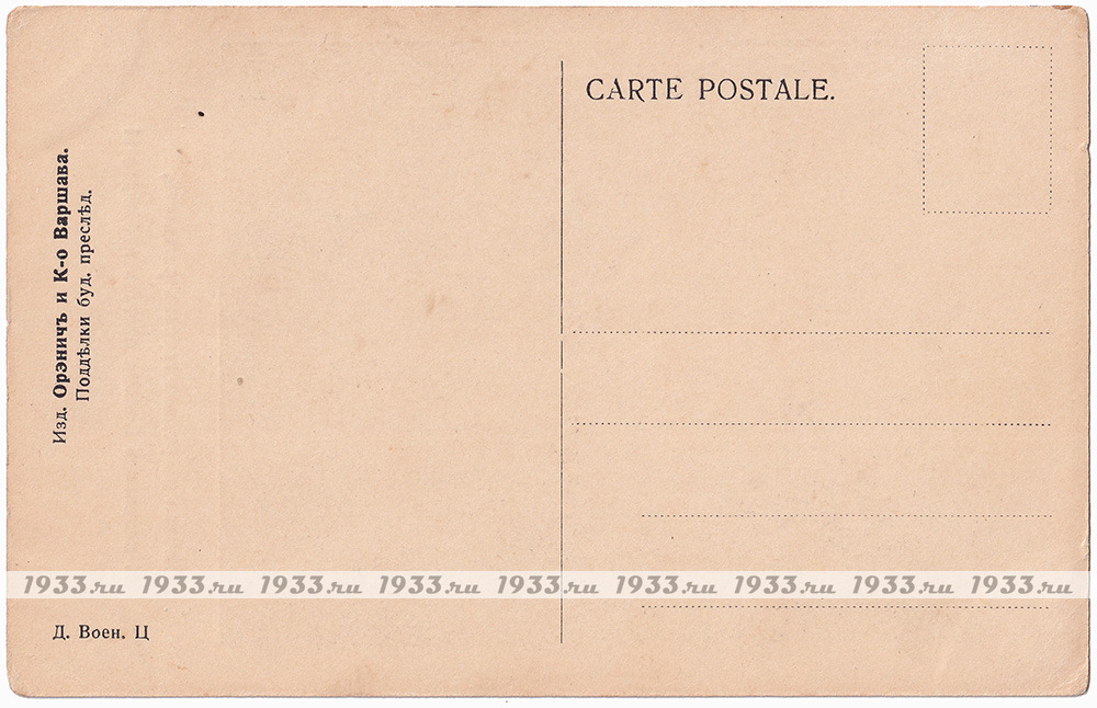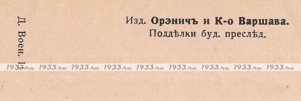 ИЗДАТЕЛЬСТВО ОРЭНИЧЪ И К-о ВАРШАВА. 1914 ГОД. ДОЗВОЛЕНО ВОЕННОЙ ЦЕНЗУРОЙ.