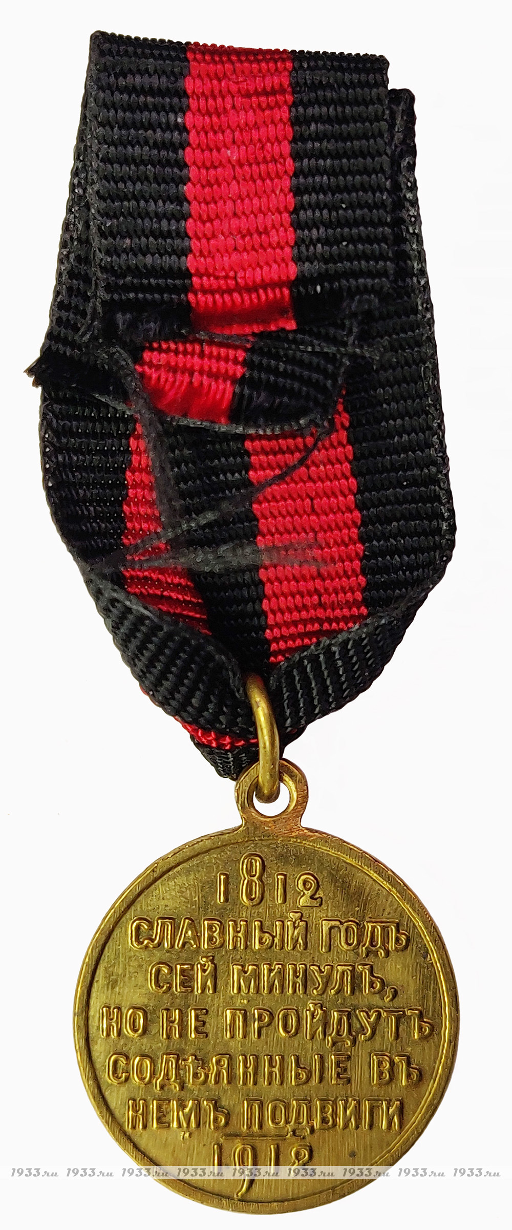 РОССИЙСКАЯ ИМПЕРИЯ. ФРАЧНИК МЕДАЛИ "В ПАМЯТЬ 100-ЛЕТИЯ ОТЕЧЕСТВЕННОЙ ВОЙНЫ 1812 ГОДА", НА ЛЕНТЕ. КОПИЯ!