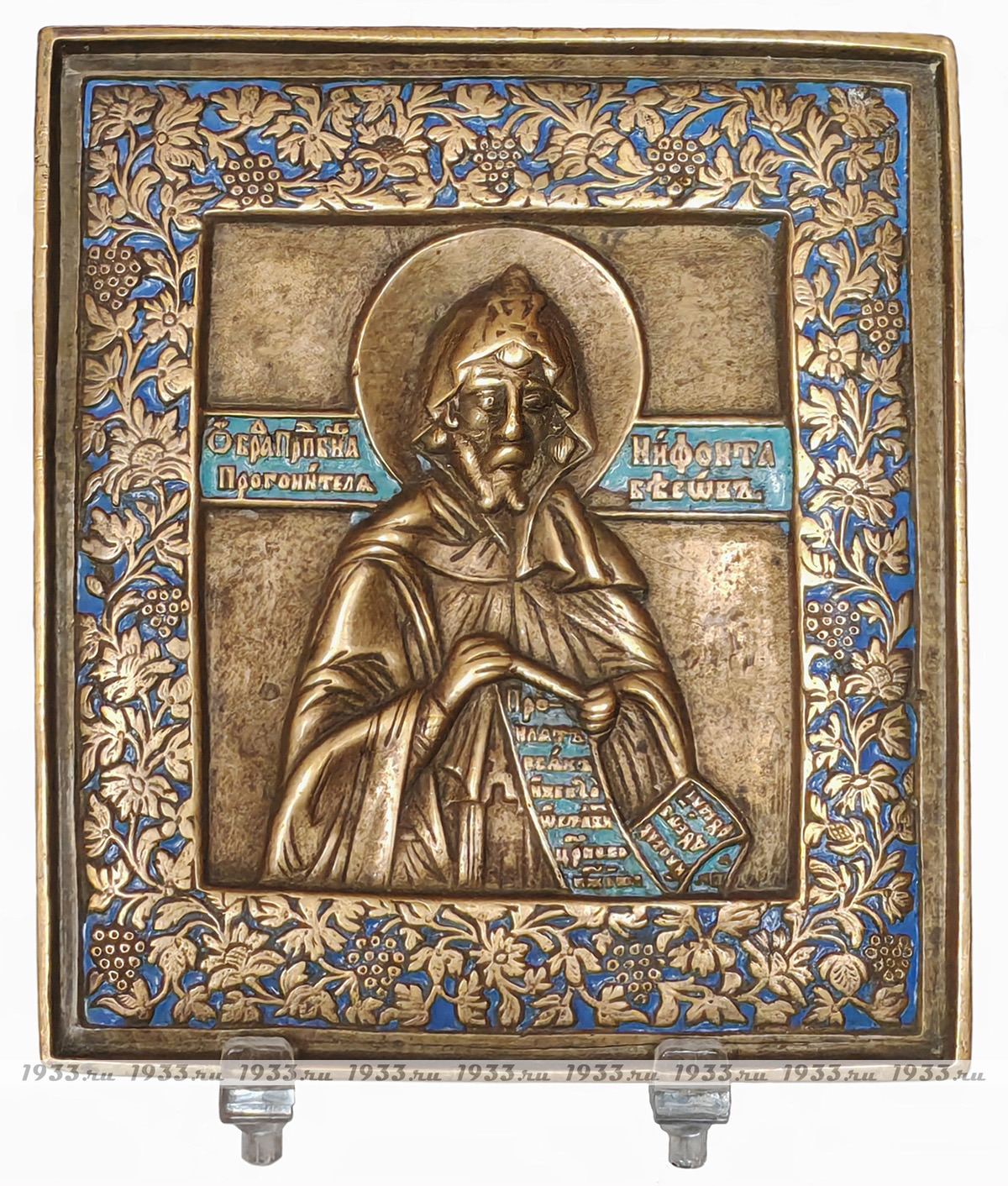 Ïðåïîäîáíûé Íèôîíò (IV â.) — åïèñêîï ãîðîäà Êîíñòàíöà íà Êèïðå. Ñîãëàñíî Æèòèþ ñâÿòîãî, â þíîñòè îí âåë ðàçãóëüíóþ æèçíü ïî íàóùåíèþ áåñîâ. Êîãäà ñâ. Íèôîíò ðàñêàÿëñÿ è îáðàòèëñÿ ê áëàãî÷åñòèþ, áåñû äîëãî ïðåñëåäîâàëè åãî, èñêóøàëè è âíóøàëè åðåòè÷åñêèå ìûñëè. Ñòàâ ïðàâåäíèêîì, ñâ. Íèôîíò ïîëó÷èë äàð ðàñïîçíàâàòü áåñîâñêèå êîçíè.  êîíöå æèçíè ñòàë Êîíñòàíöñêèì åïèñêîïîì. Íà Ðóñè ïî÷èòàëñÿ ñ äðåâíîñòè, â Íîâîå âðåìÿ ñòàë îñîáåííî ïîïóëÿðåí â ñòàðîîáðÿä÷åñêîé ñðåäå êàê «áåñîãîí». Ïàìÿòü 23 äåêàáðÿ / 5 ÿíâàðÿ.