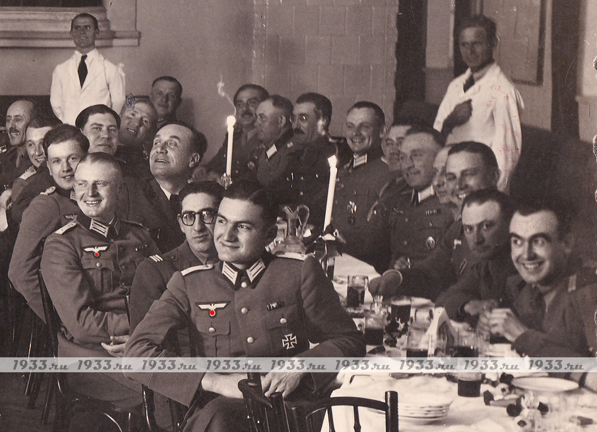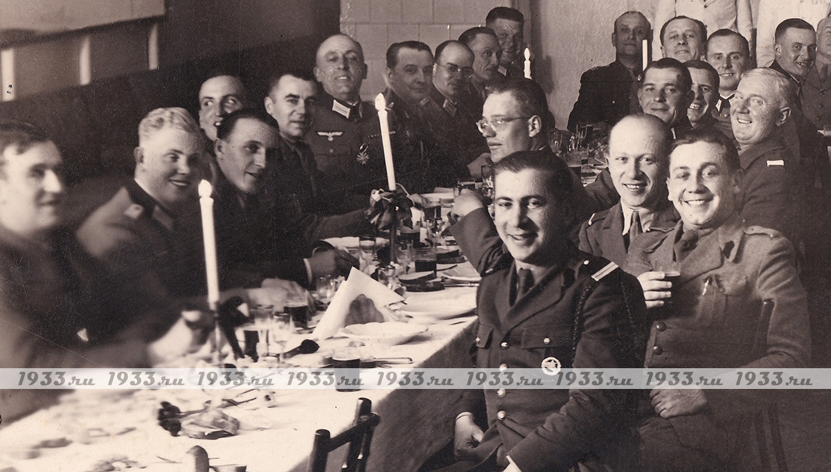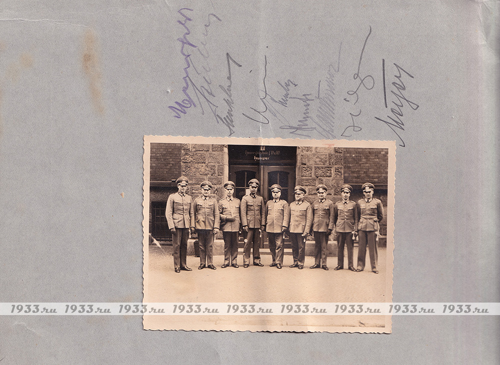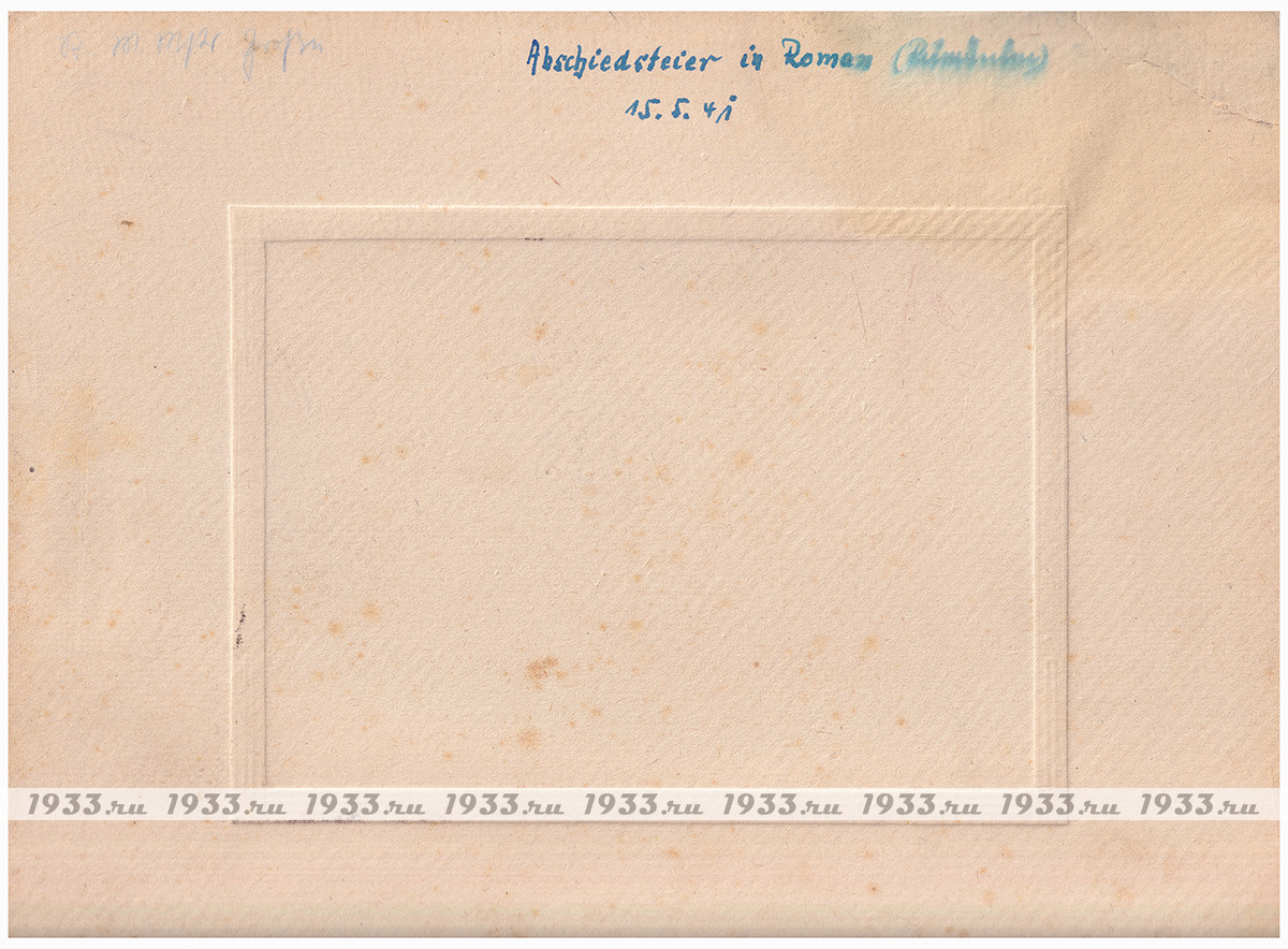 Áîëüøàÿ ôîòîãðàôèÿ íåìåöêèé ïîëèöåéñêèõ ñ ñîþçíèêàìè. Ïîäïèñü "Ïðîùàëüíûé ÷àé ïî-ðèìñêè" è äàòà 15.05.41 ã., ðàçìåð ïàñïàðòó 24 Õ 30 ñì, ôîòî 12 Õ 17,5 ñì.