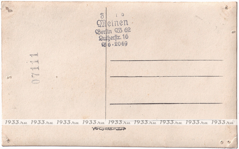 Оборот чистый, со штампиком фотоателье в Берлине. Отличное состояние.