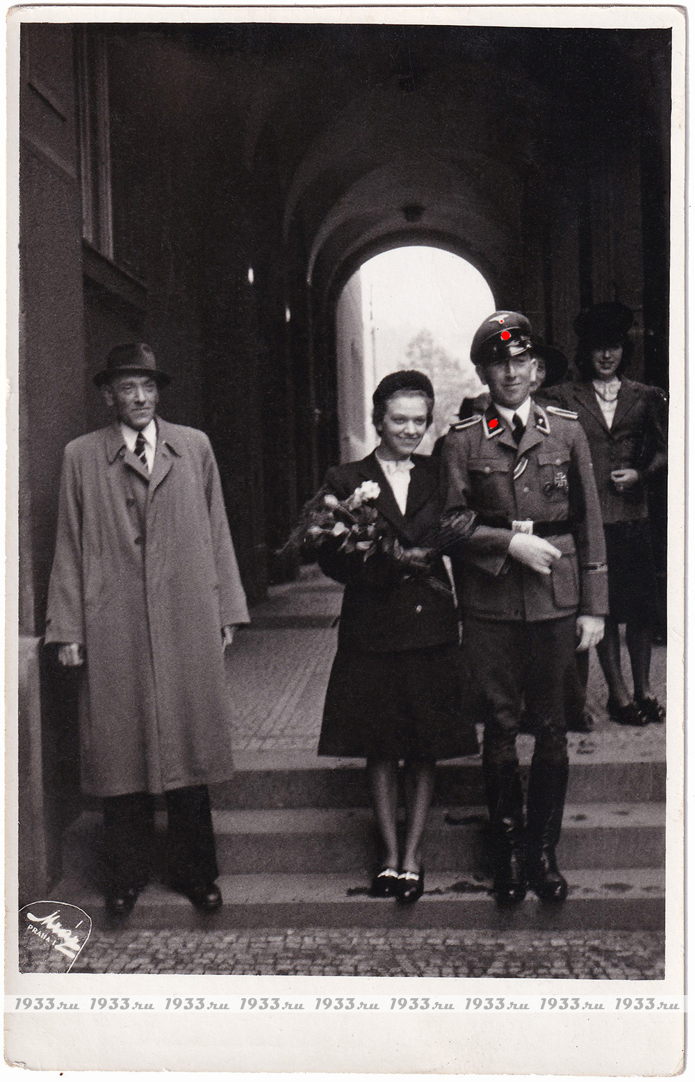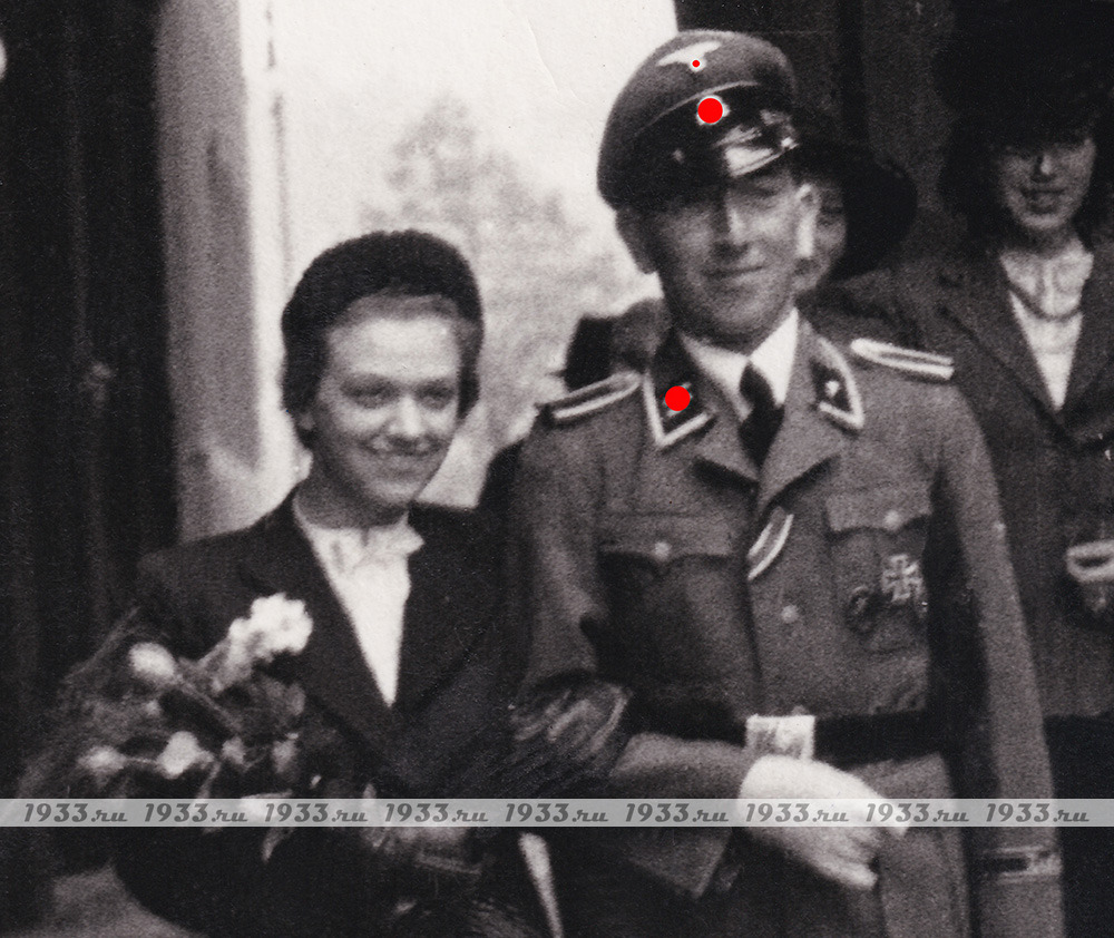 ТРЕТИЙ РЕЙХ. СВАДЕБНАЯ ФОТОГРАФИЯ УНТЕРШАРФЮРЕРА СС - ФРОНТОВИКА КАВАЛЕРА ЖК-2, ЖК-1(ОБРАЗЦА 1939 Г.) И НАГРАЖДЁННОГО ЗНАКОМ "ЗА ТАНКОВУЮ АТАКУ" И ЧЁРНЫМ РАНЕНИЕМ.