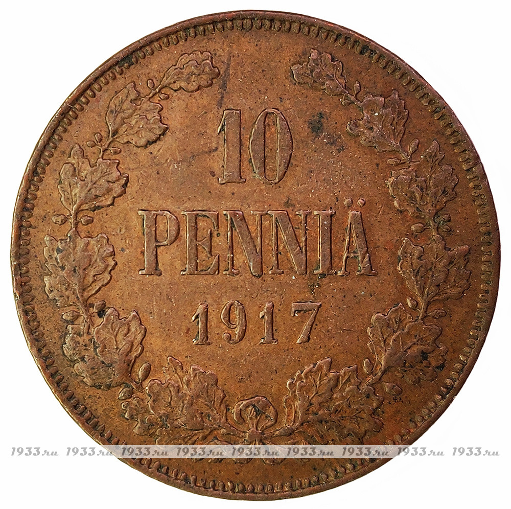 info@1933.ruФИНЛЯНДИЯ В СОСТАВЕ РОССИИ. 10 ПЕННИ 1917 Г., С ВЕНЗЕЛЕМ ИМПЕРАТОРА Назад в каталог