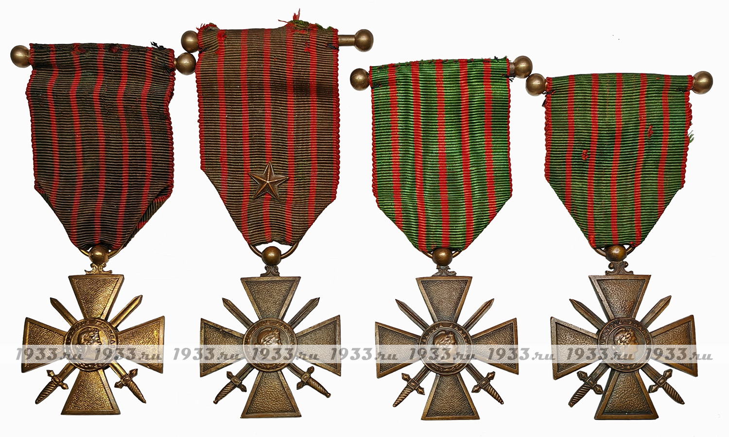 ФРАНЦИЯ. ЛОТ ИЗ ЧЕТЫРЁХ ВОЕННЫХ КРЕСТОВ С РАЗНЫМИ ДАТАМИ УЧАСТИЯ В БОЯХ: 1914-1915; 1914-1916; 1914-1917;1914-1918 Г.Г.