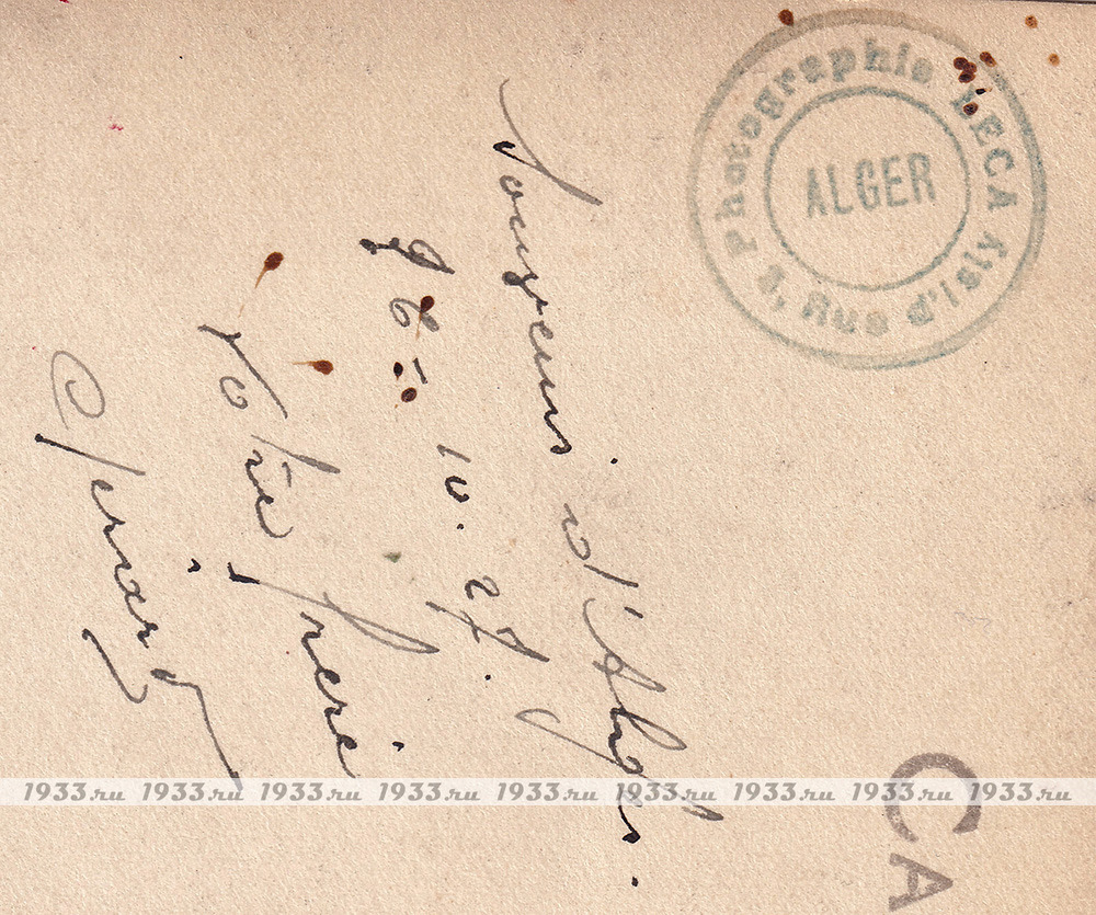 Оборот подписан и стоит штампик фотоателье в Алжире. Отличное состояние.