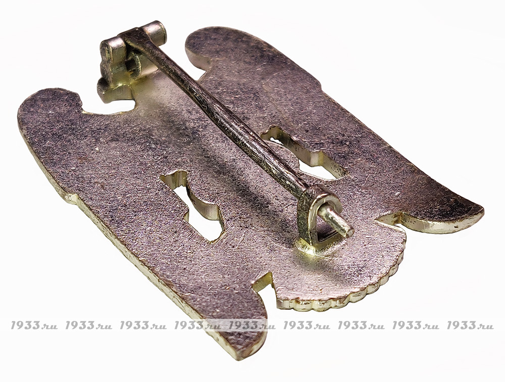 Не магнитный сплав, серебрение, горячая эмаль. Серп накладной. Накладной шильдик с надписью утрачен. Отличное состояние.