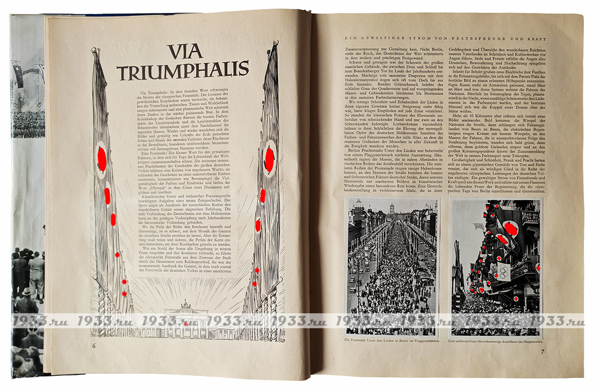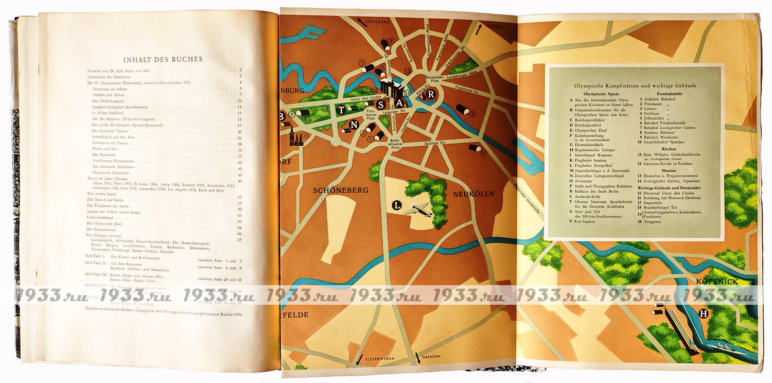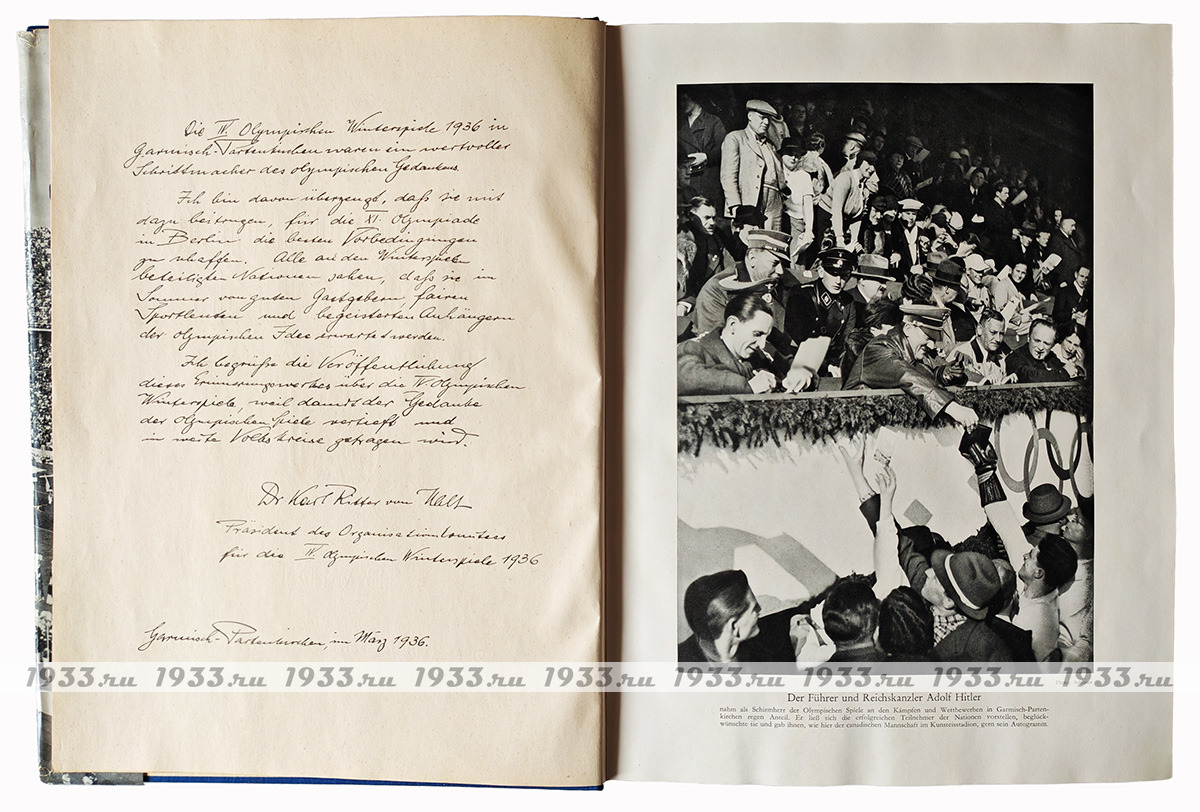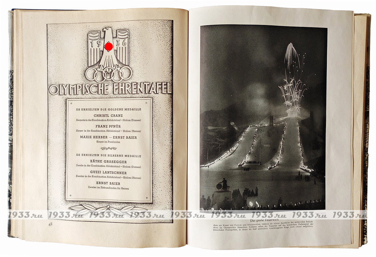 Ïàìÿòíûé àëüáîì ñ èòîãàìè Îëèìïèàäû 1936 ãîäà. Îêîëî 300 âêëååííûõ ôîòî â êàæäîì òîìå, öâåòíûå âêëàäêè, âñÿ èñòîðèÿ Èãð, âñå ÷åìïèîíû, â 1-ì òîìå ìåòðîâûé öâåòíîé ðàçâîðîò-êàðòà ìåðîïðèÿòèé.
