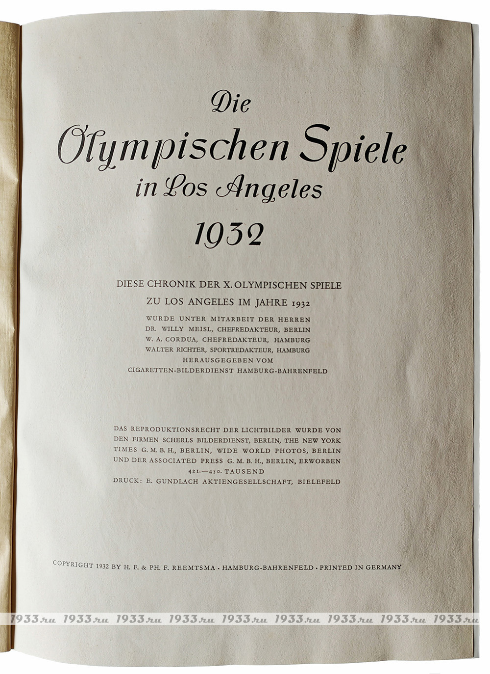 ÒÐÅÒÈÉ ÐÅÉÕ. ÀËÜÁÎÌ Â ÑÓÏÅÐÎÁËÎÆÊÅ "ÎËÈÌÏÈÀÄÀ 1932 ÃÎÄÀ Â ËÎÑ-ÀÍÄÆÅËÅÑÅ"(Olympia 1932. Die Îlymðisñhån Spiele in Lîs Àngålås 1932).
