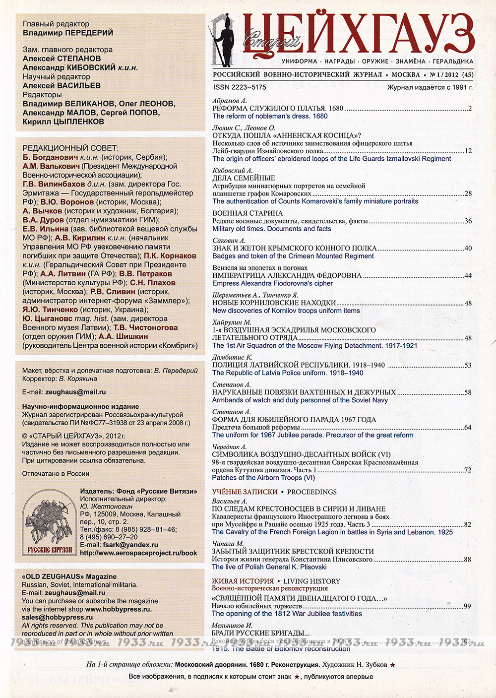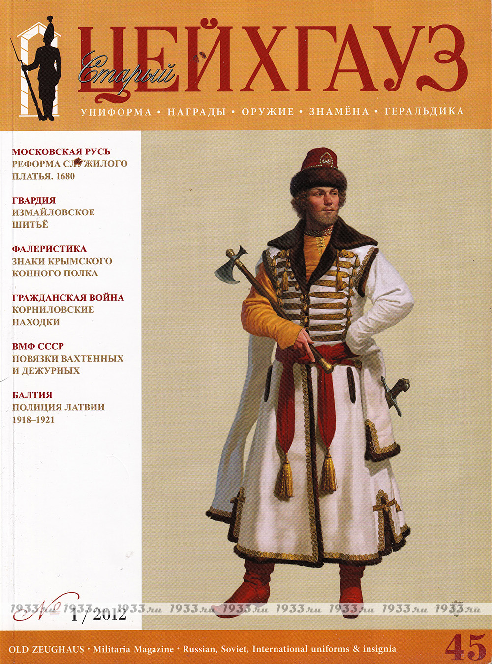 info@1933.ruВОЕННО-ИСТОРИЧЕСКИЙ ЖУРНАЛ "ЦЕЙХГАУЗ" № 1(45) - 2012 г. Назад в каталог