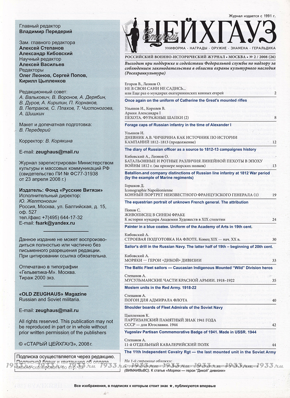 info@1933.ruВОЕННО-ИСТОРИЧЕСКИЙ ЖУРНАЛ "ЦЕЙХГАУЗ" № 2(26) - 2008 г. Назад в каталог