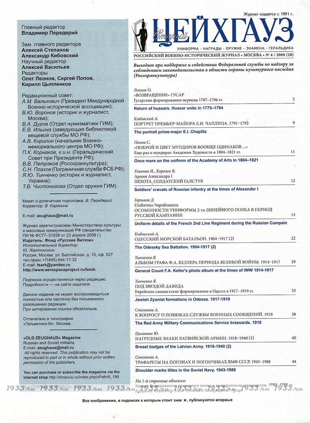info@1933.ruВОЕННО-ИСТОРИЧЕСКИЙ ЖУРНАЛ "ЦЕЙХГАУЗ" № 4(28) - 2008 г. Назад в каталог