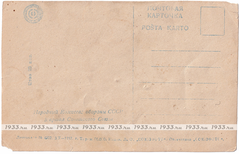 СССР. 1936 ГОД. ФОТООТКРЫТКА НАРОДНЫЙ КОМИССАР ОБОРОНЫ СССР, МАРШАЛ СОВЕТСКОГО СОЮЗА КЛИМЕНТ ЕФРЕМОВИЧ ВОРОШИЛОВ.