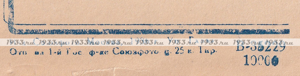 Отпечатано на 1-ой Государственной фабрике Союзфото. Тираж 10 000.