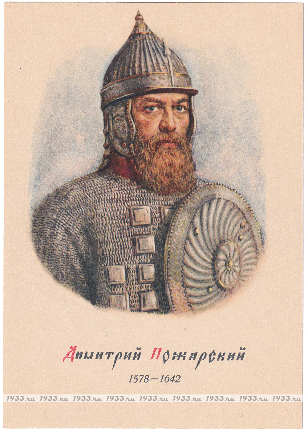 СССР. 1949 ГОД. СЕРИЯ "НАШИ ВЕЛИКИЕ ПРЕДКИ. ДМИТРИЙ ПОЖАРСКИЙ, 1578-1642". ХУДОЖНИК Л.П.СТОЛЫГВО.