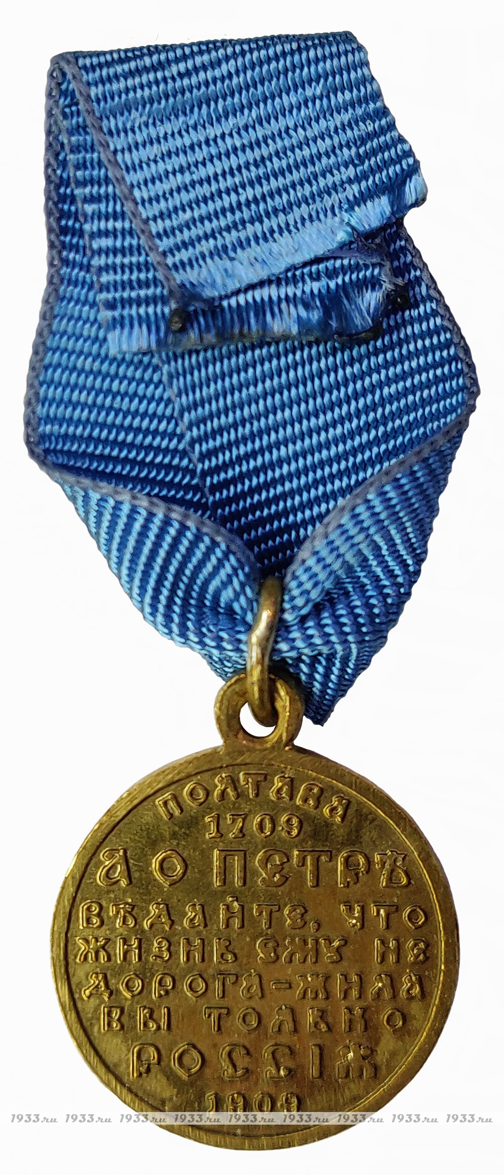 Учреждена в 1909 г., в память 200-летия Полтавской победы, на С-Пб МД отчеканено 71.500 медалей. Автор проектного рисунка медали - А.Ф. Васютинский.