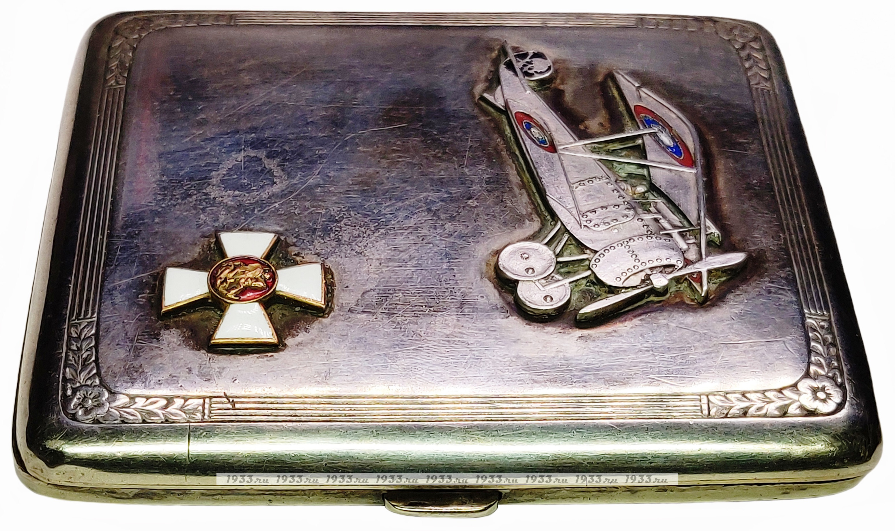 Ïîðòñèãàð èç íåìàãíèòíîãî ñïëàâà ÀËÜÏÀÊÀ, ñåðåáðåíèå, çîëî÷åíèå, ïàòèíà, ñëåäû áûòîâàíèÿ. Çàêðûâàåòñÿ ïëîòíî è ðîâíî, áåç ëþôòà. Çàìîê èñïðàâåí. Íàêëàäêà ñàìîëåò èçãîòîâëåí èç ñåðåáðà. Îòëè÷íîå ñîñòîÿíèå.