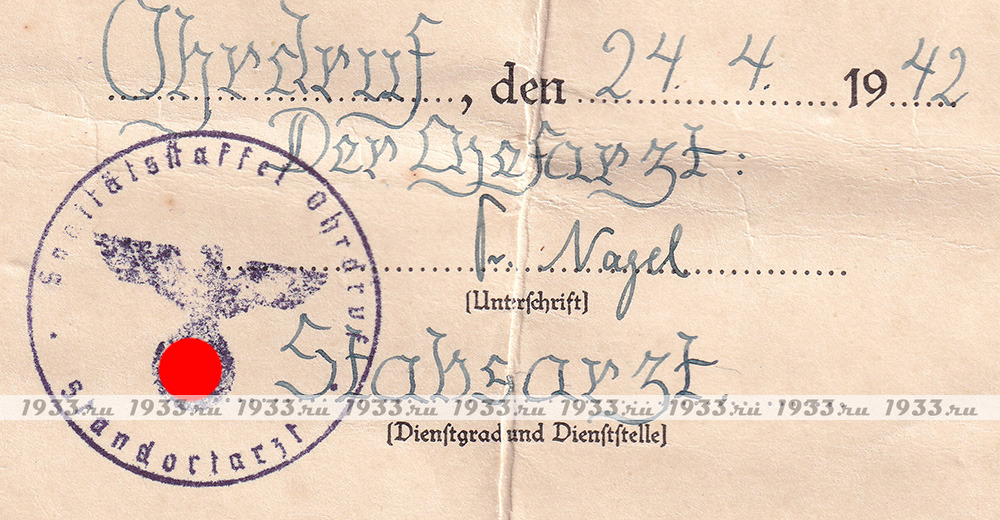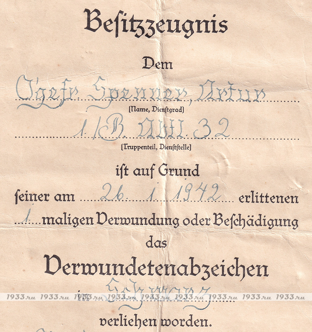 info@1933.ruТРЕТИЙ РЕЙХ. НАГРАДНОЙ ЛИСТ К ЗНАКУ ЧЁРНОЕ РАНЕНИЕ ОБРАЗЦА 1939 ГОДА Назад в каталог