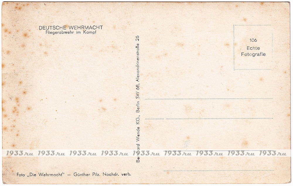 info@1933.ruТРЕТИЙ РЕЙХ. ФОТООТКРЫТКА ИЗ СЕРИИ "НЕМЕЦКИЙ ВЕРМАХТ. ЗЕНИТЧИКИ В БОЮ" Назад в каталог