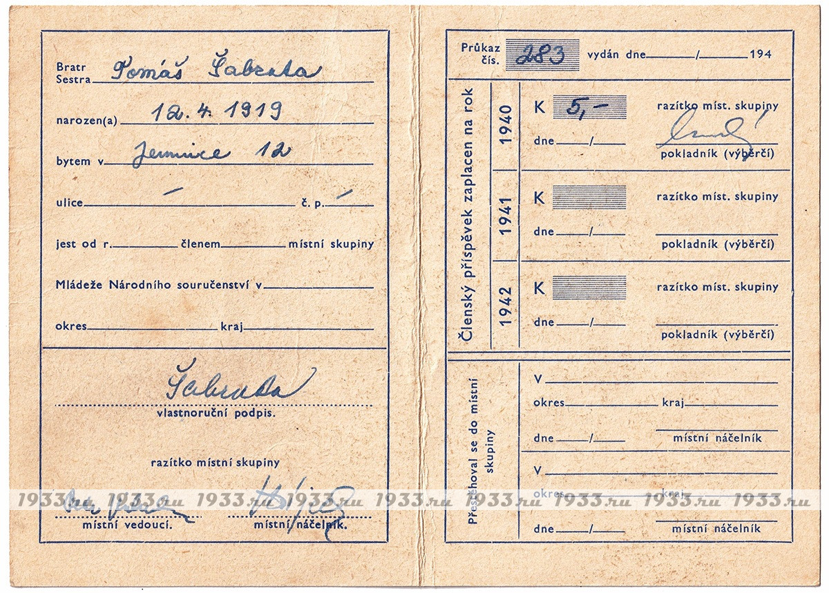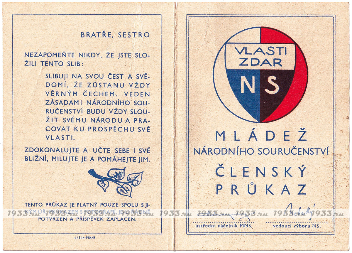 Íàöèîíàë-ñîöèàëèñòè÷åñêèé(NS) ñîþç áûë ñîçäàí â ìàðòå 1939 ãîäà èíèöèàòèâå Ý. Ãàõà ïóòåì ñëèÿíèÿ äâóõ ðàíåå ñóùåñòâóþùèõ ïðîôàøèñòñêèõ ïàðòèé ×åõîñëîâàêèè: Ïàðòèè íàöèîíàëüíîãî åäèíñòâà è Íàöèîíàëüíîé ðàáî÷åé ïàðòèè. NS äîëæåí áûë ñêîíöåíòðèðîâàòü âñå ñóùåñòâóþùèå ïîëèòè÷åñêèå îðãàíèçàöèè, êîòîðûå áûëè âûíóæäåíû çàêðûòüñÿ. Âîçãëàâèë êîìèòåò NS ðóêîâîäèòåëü çàêðûâøåéñÿ Àãðàðíîé ïàðòèè Àäîëüô Âàëîâîé, è â àïðåëå 1939 ãîäà íà÷àë ìàññîâóþ êàìïàíèþ âåðáîâêè âñåãî ÷åøñêîãî ìóæñêîãî íàñåëåíèÿ. ×ëåíàìè Ñîþçà ìîãëè ñòàòü ìóæ÷èíû ñ 21 ãîäà, ÷åøñêîé èëè íåìåöêîé íàöèîíàëüíîñòåé. Ãîñóäàðñòâåííûå ñëóæàùèå ïðàêòè÷åñêè àâòîìàòè÷åñêè ñòàíîâèëèñü ÷ëåíàìè Ñîþçà. Ê êîíöó àïðåëÿ 1939 ãîäà â ñîñòàâå NS ñîþçà ñîñòîÿëî ïî÷òè 97,5 % âñåãî ìóæñêîãî íàñåëåíèÿ Ïðîòåêòîðàòà. Íåîôèöèàëüíûì äåâèçîì ñîþçà ñòàë "Ðîäèíà áëàãîïîëó÷èÿ". Ñ îêòÿáðÿ 1939 ïî ìàé 1941 ãîäà, Ãåñòàïî ïðîâåëî ÷èñòêó àïïàðàòà NS ñîþçà è ðóêîâîäñòâî áûëî çàìåíåíî îòêðûòî ïðîíàöèñòñêèì.