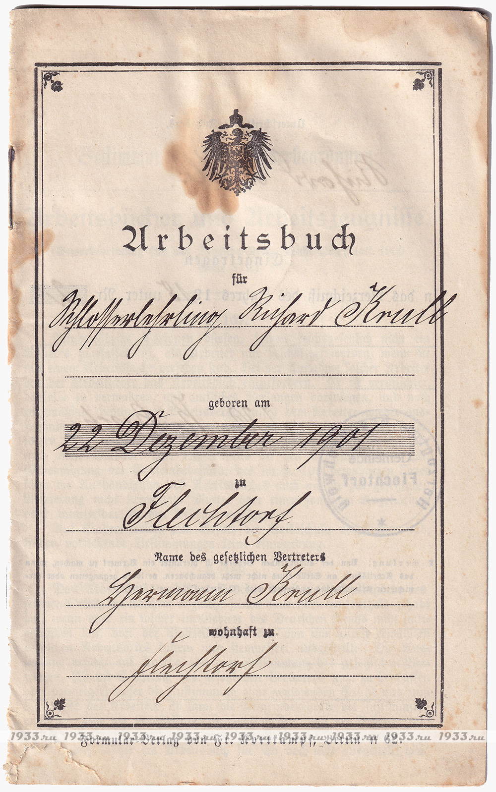 Ãðàæäàíñêèé ïàñïîðò è Òðóäîâàÿ êíèæêà íà èìÿ Ðèõàðäà Êðóëëÿ.