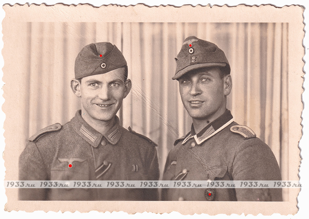ТРЕТИЙ РЕЙХ. ФОТОГРАФИЯ ДВУХ БОЙЦОВ ИЗ ВОЕННОЙ ПОЛИЦИИ - КАВАЛЕРОВ ЖК-2 (Образца 1939 г.).