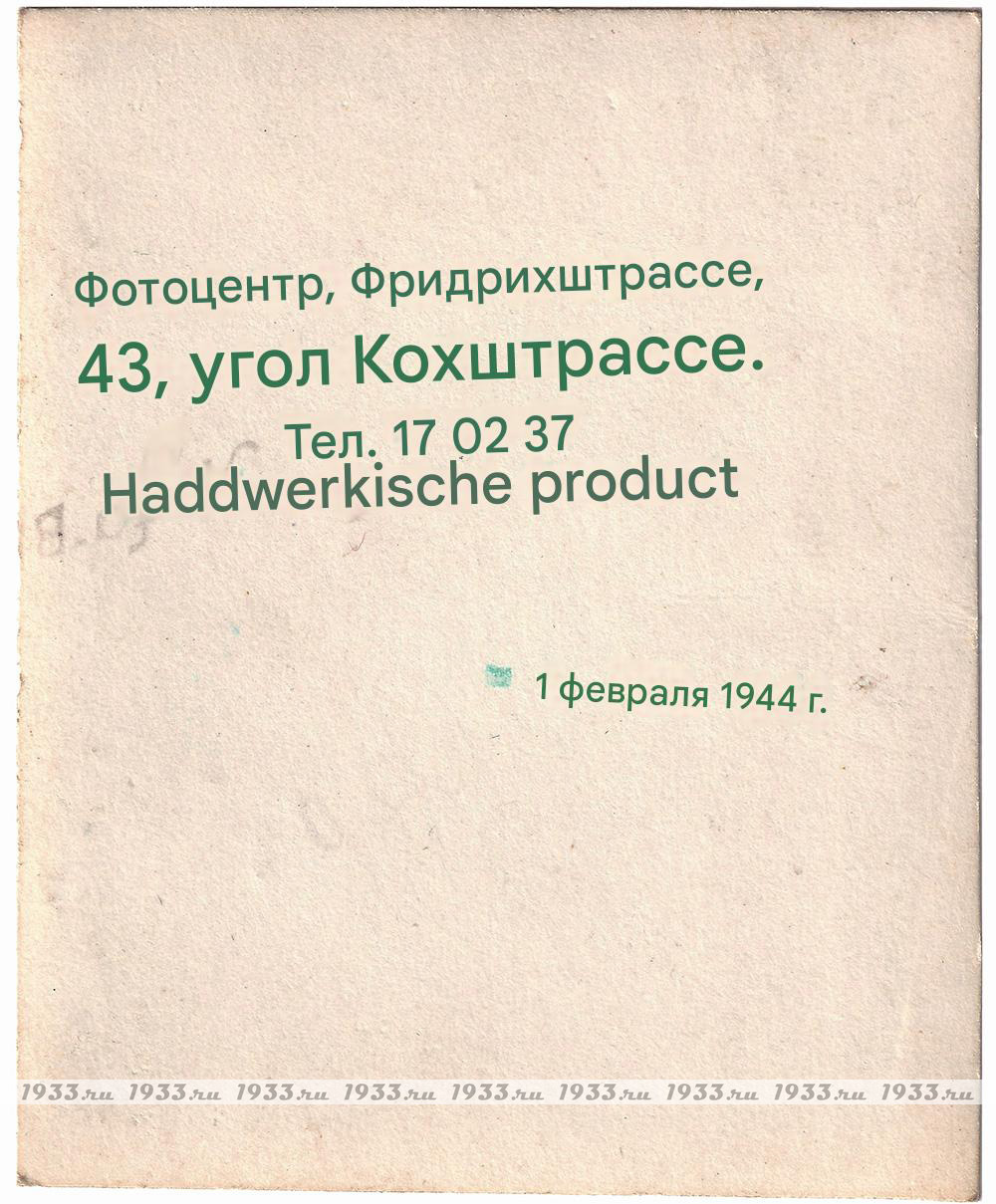 На обороте штампик фото-центра с датой 1 февраля 1944 г.. Незначительные следы бытования. Отличное состояние.