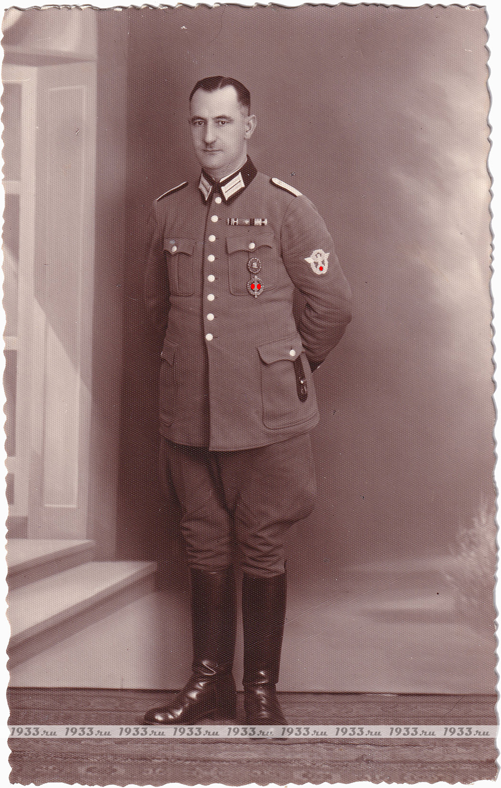 ТРЕТИЙ РЕЙХ. РОСТОВАЯ ФОТОГРАФИЯ ЛЕЙТЕНАНТА МУНИЦИПАЛЬНОЙ ПОЛИЦИИ В ПОВСЕДНЕВНОЙ ФОРМЕ С ПОДВЕСОМ ДЛЯ ШПАГИ ОБРАЗЦА 1936 ГОДА.